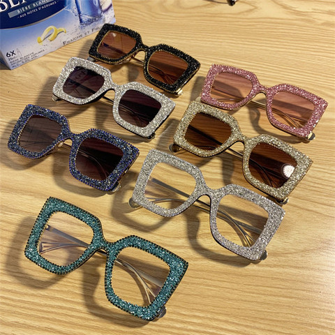Hot Selling Luxus Diamant Big Metal Frame Mode Full Diamond Cut Damen Sonnenbrille Square Sonnenbrille
